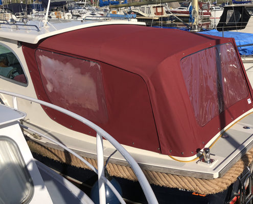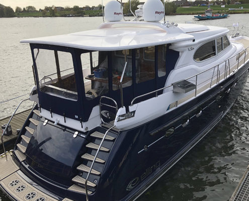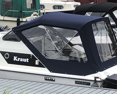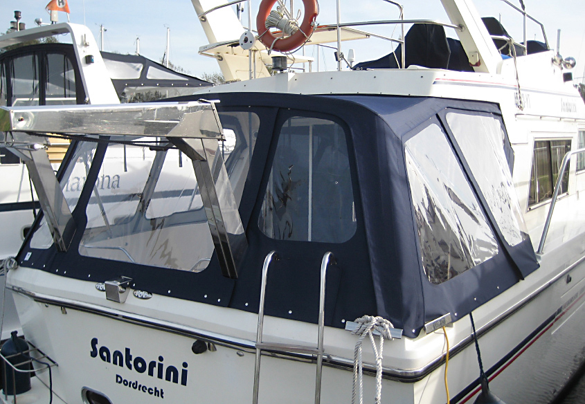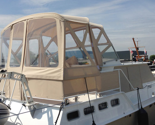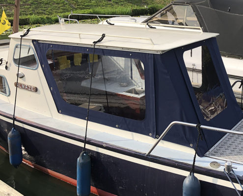 Achteromkleden, fly-bridgekappen en kuiptenten op een nieuw of bestaand frame. Rekeninghoudend met uw wensen maken we de zijdes gedeeltelijk, of geheel uitritsbaar/oprolbaar.